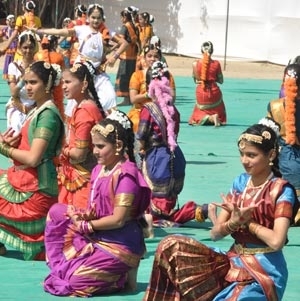 $img_titleBharatnatyam,the traditional Indian dance form on the tunes of the old version ofVande Mataramenthralled the parents and all spectators. About 150 girls dressed in the traditional bharatnatyam attire displayed the nine forms of goddess namelyDurga, Kali, Laxmi, Sarawati,etc.