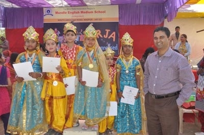 The event began with theMarch Pastof the four houses, namelyGandhar, Madhyam, Pancham and Nishadwho marched in perfect synchronization on the tunes of the songKadam, Kadam Badhaye Jaa….This was followed by a torch run by theNational Level Sports persons of the school Mast. Pranjal Salame, Mast. Tanishq Kirnake, Mast. Anish Deshpande, Miss Divya Telang and Miss Shreya Poharkar. Akin to the National Anthem for a country is the school song for the school. Sacrosanct and revered the school songwassung proudly standing in attention.The head boy of the schoolMast Kshitij Mahajanthen took theOathalong with the house members to play the games fairly. This was followed by thefelicitationofNational Level and State LevelSports persons of the school in various events.